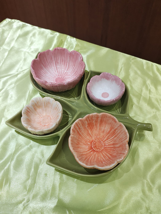 Antipastiera, margherite rosa, ceramica