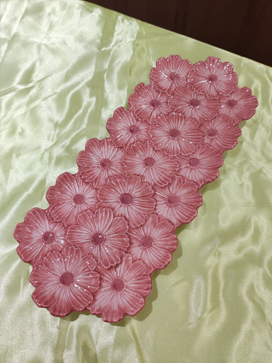 Vassoio rettangolare, margherite rosa, ceramica